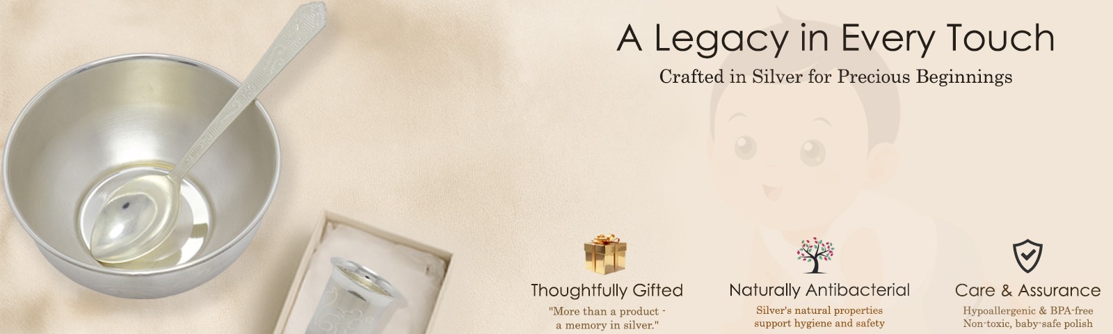 ☢Sterling Silver Dinner Set for Born Babies